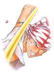 卖药的江湖郎中,看似个性好色散漫,实际上可能是个了不得的剑客。 在京四郎的体内,存在著两个灵魂,除了京四郎自己之外,另外一位就是关原之战中被壬生京四郎所封印的狂,只要受到刺激挑衅,狂就会自其体内苏醒,这时,不但眼睛会转为深红色,背上还会浮现太极图案,浑身散发出浓厚的杀气,令人为之胆寒。 |