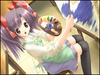故事并不是很复杂哦,由这样的介绍你也一定能想到这还是一个AVG+SLG的文字模拟爱情游戏,在日本的H-GAME市场上,一般来说AVG的电子小说类还是占了主要的部分,SLG的游戏是以同级生和下级生发展到了最高点。到了现在,基本上没有见到什么更新的游戏设计了,在这一款作品中虽然还是有创新部分,不过总的来说还是老的玩法。当你遇见女孩子开始对话的时候,和一般的AVG也没有什么区别——选择、好感度、突发事件……而到了自己独自一人的时候,就能出现移动地点的选择项。其实,我觉得游戏的文字量还是相当大的,并且着重于心理上的描写。突出的是原来很失落的主角在女孩子的安慰下逐渐恢复并且重新拿起画笔描绘自己爱情生活的过程,所以对于日文不是很好的朋友,玩起来的确很费劲。游戏发行的时候号称是随机出现事件,不过我看了也实在不多,不过有一点倒是很好,游戏保持着纯爱类作品的优良传统——嘿嘿,你要是妄图脚踩两条船的话,后果自负吧!这里倒是想起来以前的朋友经常问我下级生什么的怎么存档的问题,ELF设计的游戏存档的确是够XXX的,懒得骂了,这一款作品可以随时存档,你就放心吧(笑)。