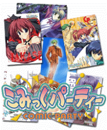 终于,在众所期盼之下,2001年中旬开始,『こみっくパーティー』被KSS会社动画化。动画的内容我觉得没必要多说了,一个关于主角(千堂和树)如何在同好和朋友们的激励下勇敢地参加COMIC PARTY的故事(笑)。 动画并没有一个说得过去的结局,和游戏在这一点上不同,动画的结束只是下一届COMIC PARTY大会的开始——未来的路还没有走完,也许还早着吧。这是我看到这种结局的时候首先想到的。