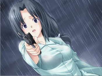 那张托尼雅手捂着伤口,在雨巷中打最电话的那张CG。
