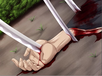 他接受了自己的死,从肩膀到腹部都被深深地砍了一刀。
