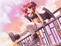 Work!系列里的话,克利夫和威尔岂不成了恶魔的帮凶了,而且也“不符合剧情发展”(笑)。游戏中的人物设定,这个么——地球人都知道,从年龄来划分:年幼(而且还是看得像8岁实际上是18岁的)、和主人公差不多大的(一般第一女主角、完美型都是这种)、姐姐型(年长型的统称啦,反正不能叫大妈型、阿姨型,欧巴桑、除非你是BT(汗));从性格上来划分:天真活泼型、温柔可爱型、朝气澎湃型、内心封闭型、性格变态型(SM啦、调教啦……)等等等等,众玩家早耳熟能详了,反正怎么跳也跳不出这个框框。这个游戏自然也不例外,但是搞笑的是,游戏中那个看起来天真无暇、活泼可爱的小恶魔MM琪蒂,完全符合“年 幼型”的定义,居然……100多岁了……这个这个……夸张了点吧~~~