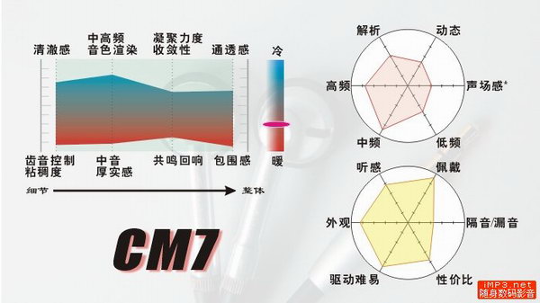 推荐前端类型:音染细腻的日系暖声播放器无疑是最合适的搭配。不过注意一点,因CM7在中频和中低频段本身就具有明显音染,因而音色染得过重的前端或许会令音色失真;另外,也可以尝试一下与更多美系冷声播放器搭配,获得相对冷静的听感。