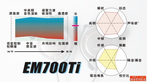 推荐前端类型:在几款耳挂和动圈耳塞中,EM700Ti是比较难推动的,虽然,小推力下也能出不错的声音,但如果能上一个推力足够的机器,相信更能发挥其实力。要注意不要找那种中高频音染过于浓烈的前端,否则和耳机本身的音染混在一起,恐怕会乱得一团糟。