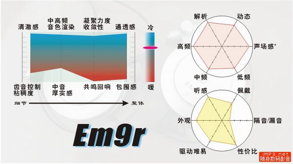 推荐音乐类型:清亮的音色和较高的素质,让EM9r成为适合听高亢的女声和乐器的不错的选择。同样显而易见的是,如果用EM9r来听暖色和大动态的音乐,将大失水准。
